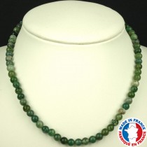 Collier en pierres et minéraux d'Agate Mousse pour retrouver joie et bonheur. Ce ravissant collier de lithothérapie fait main, authentique et véritablement au goût du jour et dans l’air du temps, est réalisé avec des perles de pierre semi précieuse d'Agate Mousse naturelle de 8 mm, minutieusement polies puis montées sur un solide fil terminé par un...